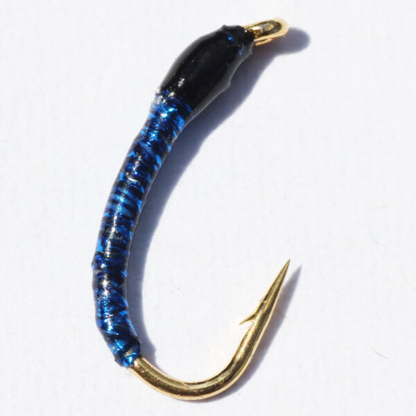 Zuckmücken und ihre Larven und Puppen bilden zu gewissen Jahreszeiten die Hauptnahrung der Renken und werden durch perfekte Nachbildungen imitiert. Die Nymphe Nr.07 wird aus dem Material Lureflash dunkelblau gebunden. Die 3-fache Lackschicht gibt diesen Imitaten einen silbrigen Glanz, der dem natürlichen Vorbild der Nymphenhülle sehr nahe kommt und den Nymphen Körper zusätzlich widerstandsfähig macht. In Kombination mit einem VMC – Öhrhaken sind die Nymphen oft wieder verwendbar.